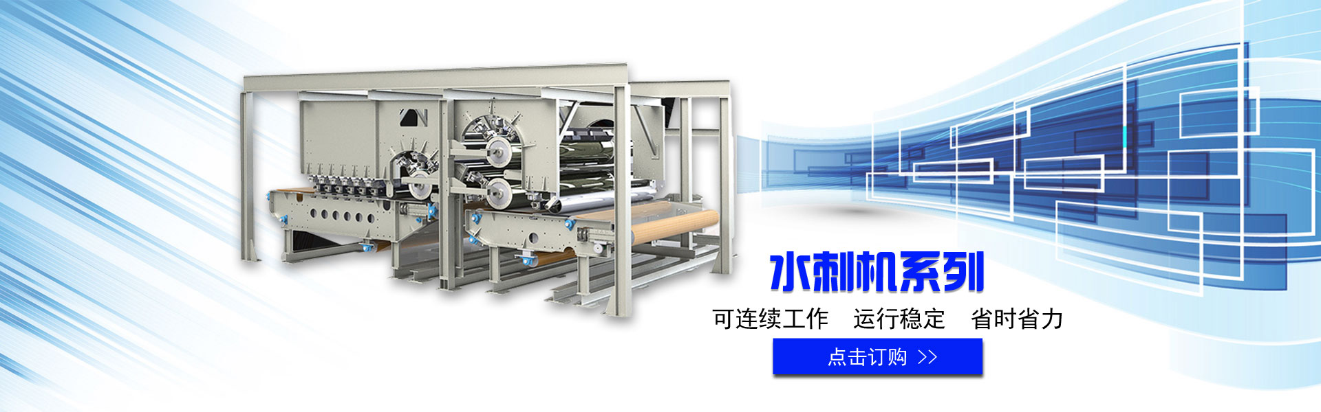 現(xiàn)公司主要供應(yīng)生產(chǎn)線:水刺生產(chǎn)線、針刺生產(chǎn)線、無膠棉生產(chǎn)線、噴膠(砂)仿絲棉生產(chǎn)線、熱軋生產(chǎn)線、熔噴生產(chǎn)線、聚酯吸音板生產(chǎn)線、百潔布生產(chǎn)線、紡織品拉毛后處理生產(chǎn)線……